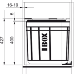 40 l. Farba čierna. Upínacie rám zaisťuje pevné uchytenie vrecka (alebo 2 vreciek) a jeho/ich jednoduchú výmenu a maximálne využitie objemu sortera. Polica nad košom v cene sortera. Polica obsahuje aktívny uhlíkový filter, ktorý pohlcuje nepríjemné pachy.