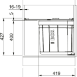 40 l. Farba čierna. Upínacie rám zaisťuje pevné uchytenie vrecka (alebo 2 vreciek) a jeho/ich jednoduchú výmenu a maximálne využitie objemu sortera. Polica nad košom v cene sortera. Polica obsahuje aktívny uhlíkový filter, ktorý pohlcuje nepríjemné pachy.