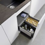 - Pri plánovaní treba zohľadniť výšku zabudovania košového systému, hĺbku drezu a z toho vyplývajúci min. rozmer pre spodnú skrinku.