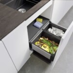 - Pri plánovaní treba zohľadniť výšku zabudovania košového systému, hĺbku drezu a z toho vyplývajúci min. rozmer pre spodnú skrinku.