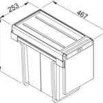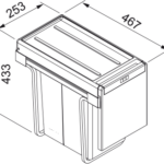 Ručný výsuv. Min. montážny priestor 253 × 467 × 433 mm. Farba čierna/šedá. 2 Koše (1× 15 l).