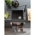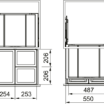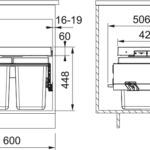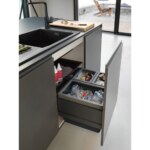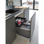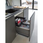 Čelný výsuv. Min. montážny priestor 564× 506× 448 mm. Farba čierna/šedá. 3 Koše (1× 26 l, 1× 11 l). Výsuvná zásuvka nad košom v cene sortera. Výsuvná zásuvka obsahuje aktívny uhlíkový filter, ktorý pohlcuje nepríjemné pachy. Súčasťou sortera je plnovýsuv s tlmením, ktorý zaručuje tichý dojazd. (Výsuv od firmy GRASS).