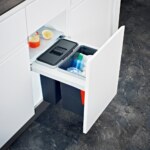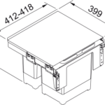Čelný výsuv. Min. montážny priestor 411 × 399 × 375 mm. Farba šedá. 2 Koše (1× 12 l, 1× 18 l). 1× Vrchnák na 12 l kôš (133.0200.695) v cene sortera. Kovová polica nad košom v cene sortera. Súčasťou sortera je plnovýsuv s tlmením, ktorý zaručuje tichý dojazd. (Výsuv od firmy FGV).