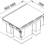Čelný výsuv. Min. montážny priestor 561 × 399 × 375 mm. Farba šedá. 3 Koše (1× 8 l, 1× 12 l, 1× 18 l + Plytká miska – Hĺbka misky 75 mm). 1× Vrchnák na 8 l kôš (133.0200.694) v cene sortera. Kovová polica nad košom v cene sortera. Súčasťou sortera je plnovýsuv s tlmením, ktorý zaručuje tichý dojazd. (Výsuv od firmy FGV).