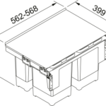 Čelný výsuv. Min. montážny priestor 561 × 399 × 375 mm. Farba šedá. 4 Koše (1× 8 l, 1× 12 l). 1× Vrchnák na 8 l kôš (133.0200.694) v cene sortera. Kovová polica nad košom v cene sortera. Súčasťou sortera je plnovýsuv s tlmením, ktorý zaručuje tichý dojazd. (Výsuv od firmy FGV).