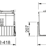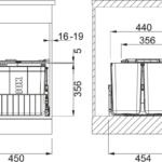 Čelný výsuv. Min. montážny priestor 411 × 454 × 383 mm. Farba čierna/šedá. 2 Koše (1× 22 l). Polica nad košom v cene sortera. Polica obsahuje aktívny uhlíkový filter, ktorý pohlcuje nepríjemné pachy. Súčasťou sortera je plnovýsuv s tlmením, ktorý zaručuje tichý dojazd. (Výsuv od firmy GRASS).