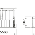 Čelný výsuv. Min. montážny priestor 561 × 454× 383 mm. Farba čierna/šedá. 2 Koše (1× 22 l). Polica nad košom v cene sortera. Polica obsahuje aktívny uhlíkový filter, ktorý pohlcuje nepríjemné pachy. Súčasťou sortera je plnovýsuv s tlmením, ktorý zaručuje tichý dojazd. (Výsuv od firmy GRASS).