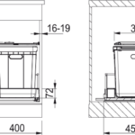 Plastový kôš 40 l (Možnosť umiestniť i 2 sáčky). Farba čierna. Polica nad košom v cene sortera. Polica obsahuje aktívny uhlíkový filter, ktorý pohlcuje nepríjemné pachy. Kôš sa vkladá do zásuvky, ktorá je osadená pozdĺžnym relingom alebo vysokou bočnicou. Odporúčané plnovýsuvy BLUM, GRASS, HETTICH.