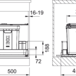 Plastový kôš 40 l (Možnosť umiestniť i 2 sáčky) + 1 Bočný kôš. Farba čierna. Polica nad košom v cene sortera. Polica obsahuje aktívny uhlíkový filter, ktorý pohlcuje nepríjemné pachy. Kôš sa vkladá do zásuvky, ktorá je osadená pozdĺžnym relingom alebo vysokou bočnicou. Odporúčané plnovýsuvy BLUM, GRASS, HETTICH.