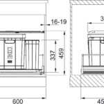 Plastový kôš 40 l (Možnosť umiestniť i 2 sáčky) + 1 Boční kôš. Farba čierna. Polica nad košom v cene sortera. Polica obsahuje aktívny uhlíkový filter, ktorý pohlcuje nepríjemné pachy. Kôš sa vkladá do zásuvky, ktorá je osadená pozdĺžnym relingom alebo vysokou bočnicou. Odporúčané plnovýsuvy BLUM, GRASS, HETTICH.