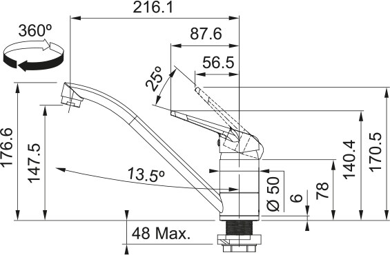 Beztlaková. Otočná 360°. Pripojenie Hadičky 45 cm. Prietok vody 9 l/min. (3 bar). Vhodné pre beztlakové ohrievače vody.