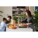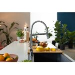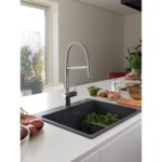 Inšpiratívna na vonok, inovatívna vo vnútri. Tajomstvom šetrnosti k životnému prostrediu je ECO kartuša, navrhnutá tak, aby obmedzovala prietok i teplotu, pomáha aktívne šetriť vodu i energiu. Vďaka stupňovitému ovládaniu páčky je možné znížiť spotrebu vody o 50%. Pootočením kolieska na kartuši môžete obmedziť maximálnu možnú teplotu vody tečúcej z batérie. Otočná 180°. S koncovkou na pružine osadenou perlátorom. S reguláciou Sprcha/Prúd. Hadica s kovovou pružinou. Pripojenie Hadičky 55 cm. Prietok vody 7,5 l/min. (3 bar). Technológia pre úsporu vody. ECO kartuša. Nie je vhodná pre montáž do nerezových drezov.