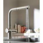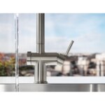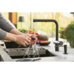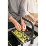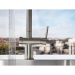 Batéria ACTIVE TWIST s integrovaným ovládaním výpuste. Okrem štýlového, minimalistického vzhľadu ponúka batérie ACTIVE TWIST inovatívnu špeciálnu funkciu, ktorá spája batériu s ovládaním výpuste drezu. Batéria ACTIVE TWIST má schopnosť drez nielen naplniť, ale zároveň aj vyprázdniť. Takže voda jednoducho, bezpečne a hygienicky odteká. Doporučujeme kombinovať s nerezovými drezmi modelovej rady Mythos (MYX 210/610-34, MYX 210/610-50, MYX 110-34 a MYX 110-50) a fragranitovými drezmi modelovej rady Kubus 2 (KNG 110-34 a KNG 110-52). Otočná 180°. S vyťahovacou koncovkou osadenou perlátorom. S reguláciou Sprcha/Prúd. Opletená sprchová hadica 150 cm. Pripojenie Hadičky 45 cm. Prietok vody 7,5 l/min. (3 bar). Laminárny prietok vody. Technológia pre úsporu vody. ECO kartuša.