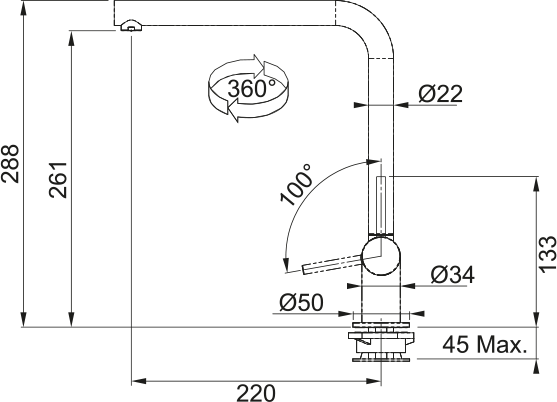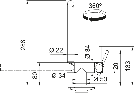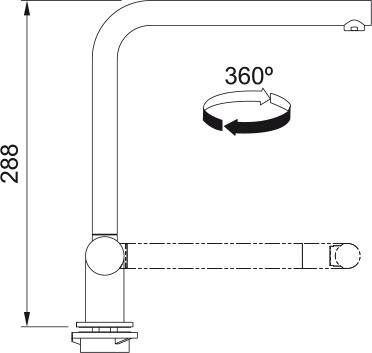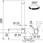Otočná 360°. Sklopná. Výška po sklopení 80 mm. Pripojenie Hadičky 45 cm. Prietok vody 10 l/min. (3 bar). Technológia pre úsporu vody.