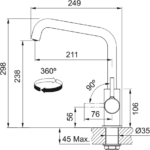 Otočná 360°. Pripojenie Hadičky 45 cm. Prietok vody 10,5 l/min. (3 bar).