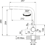 Otočná 360°. Pripojenie Hadičky 45 cm. Prietok vody 9,8 l/min. (3 bar).