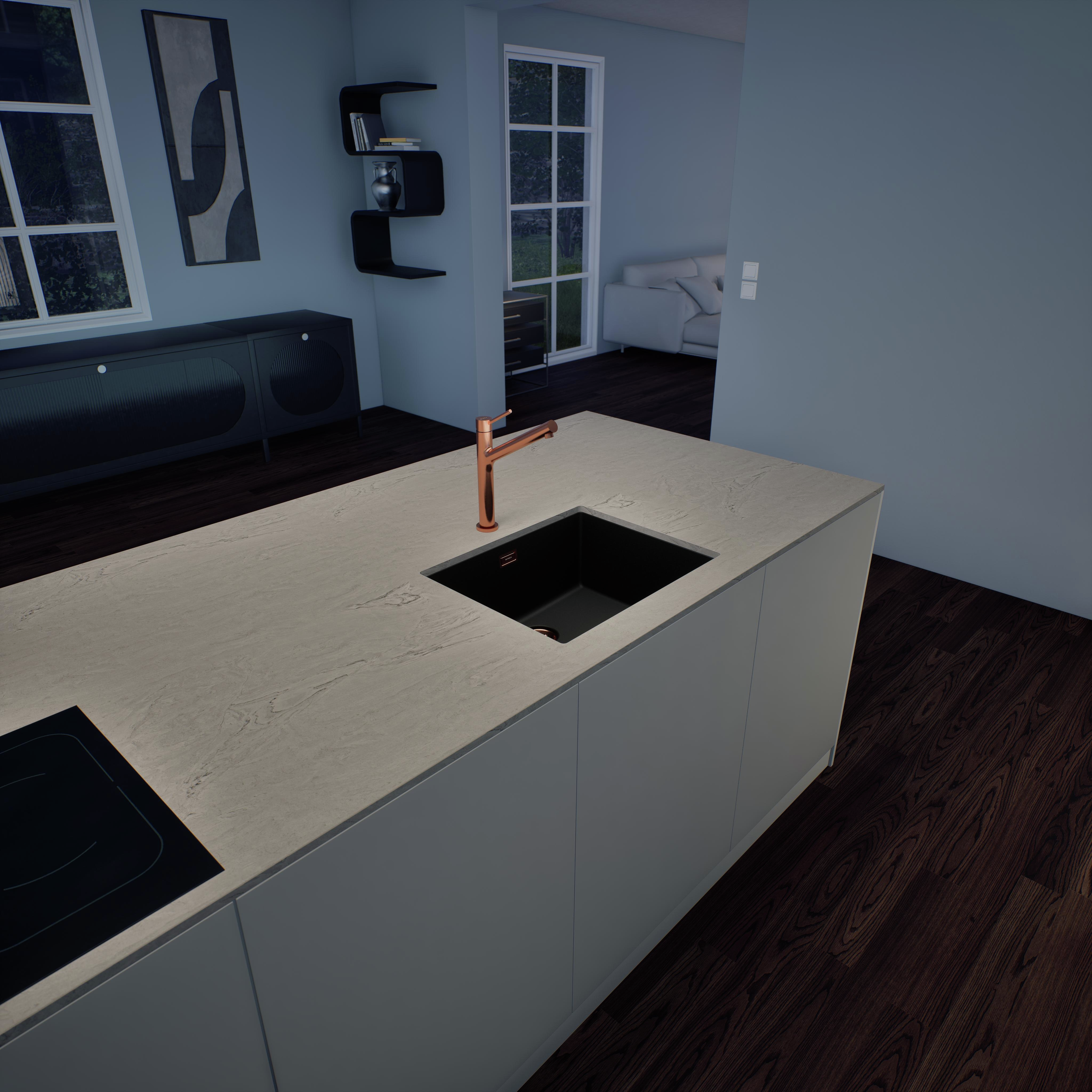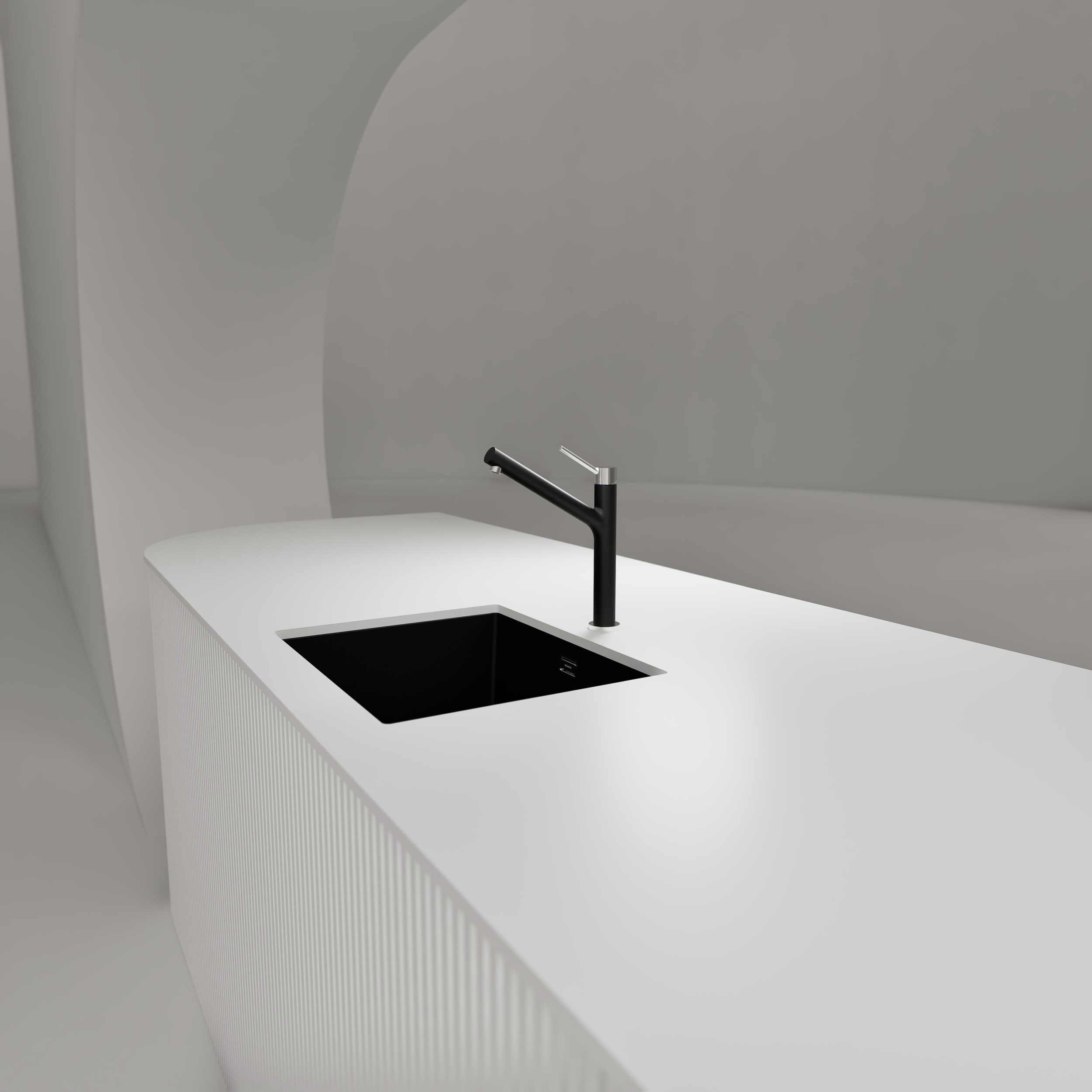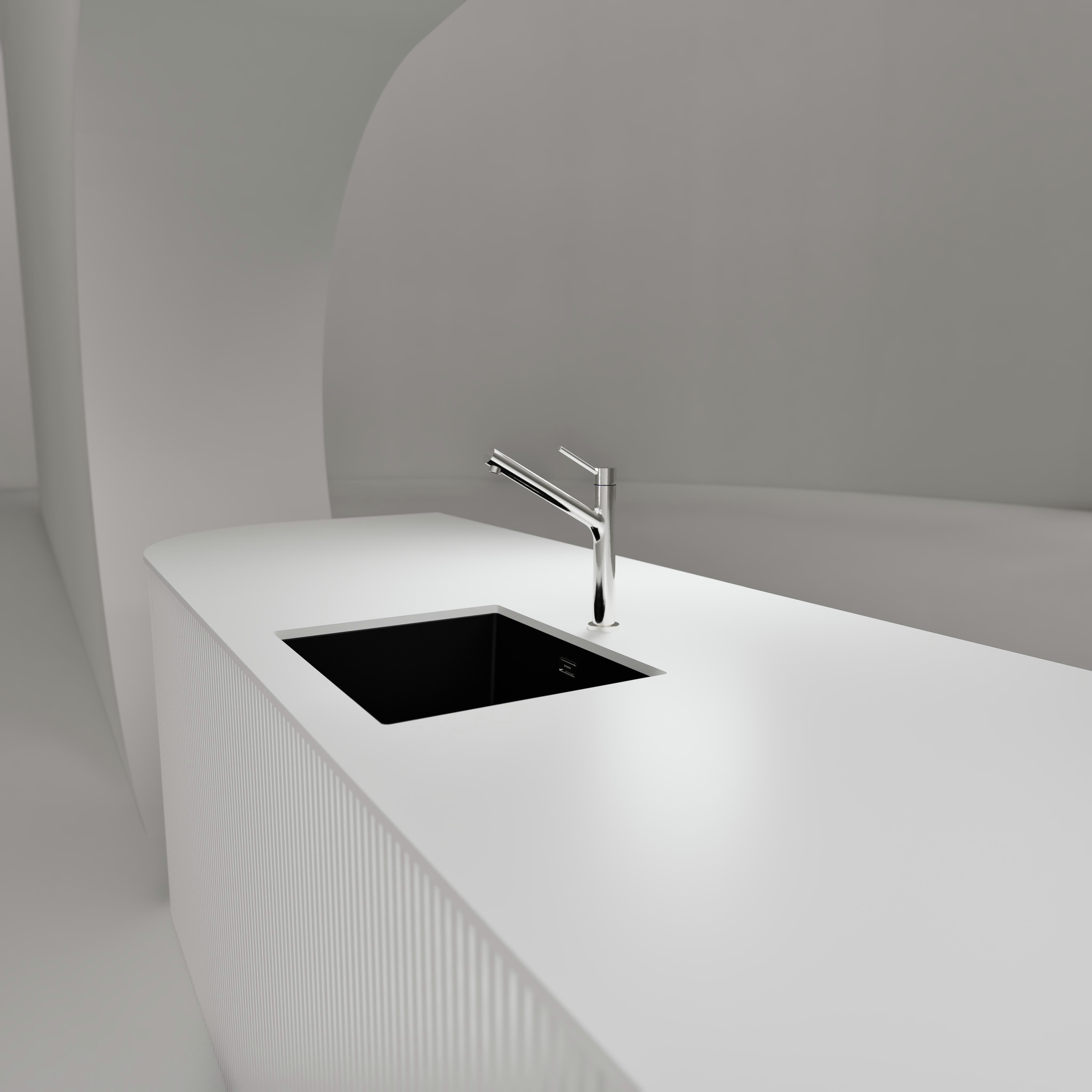 Klasická batéria SCHOCK Dion je so svojou zvýšenou výtokovou pozíciou obzvlášť obľúbená pri navrhovaní moderného priestoru pri dreze.