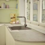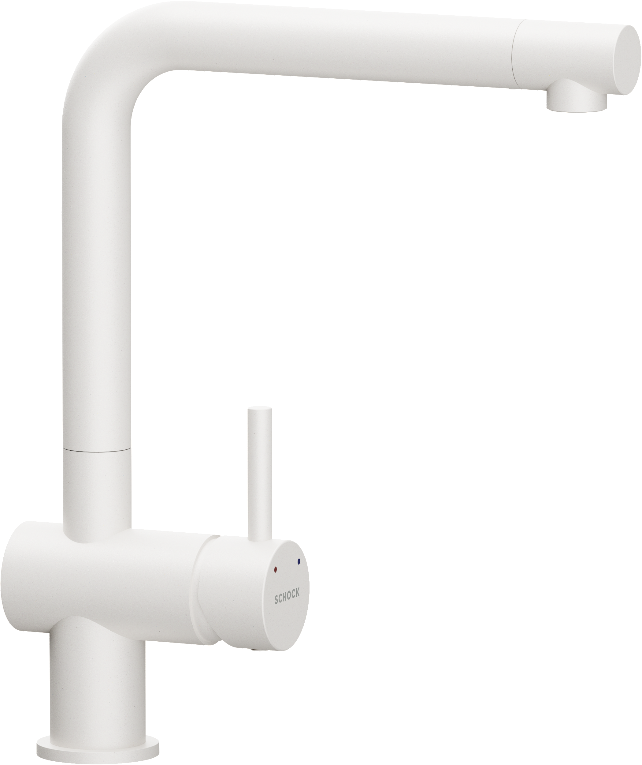 Batéria SCHOCK Epos vyniká pravou polohou páky a zvýšenou výtokovou pozíciou. Dostupná je aj vo farebnom prevedení.