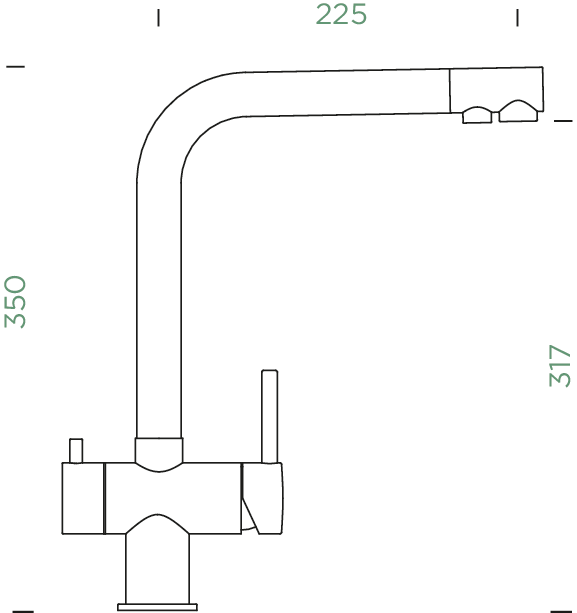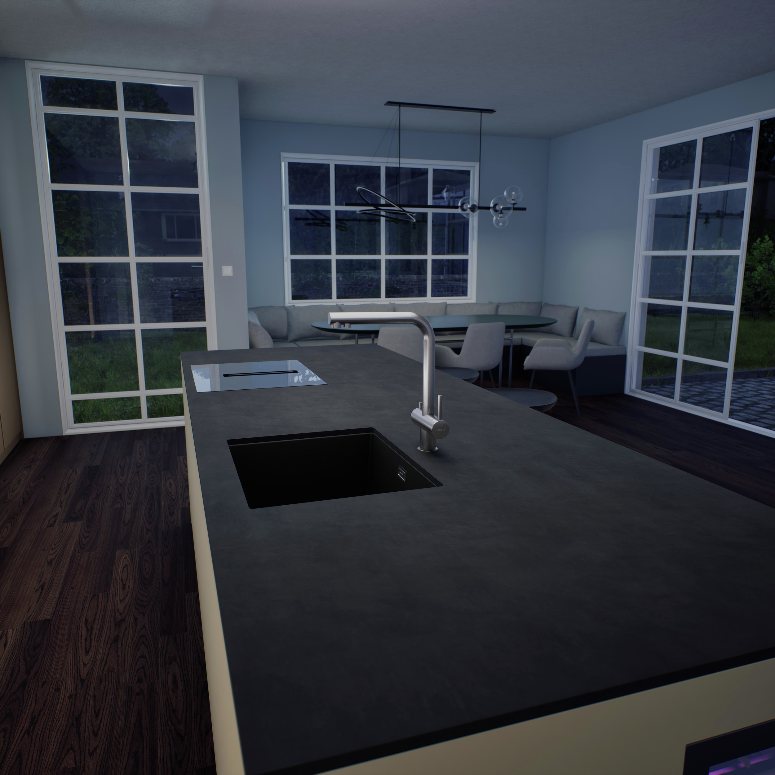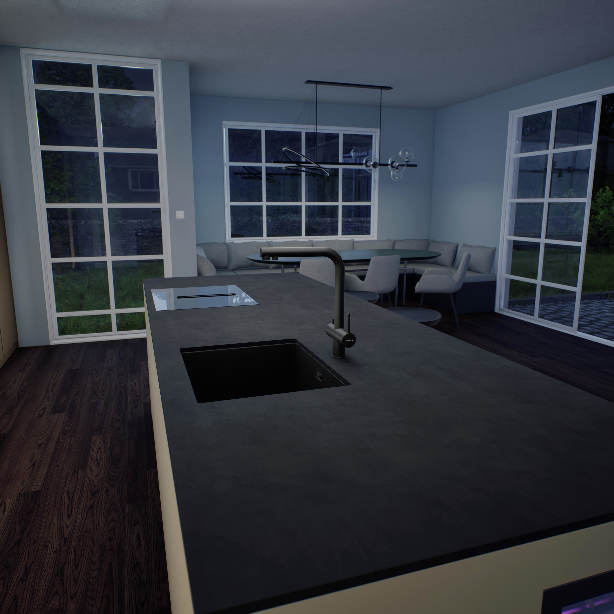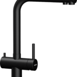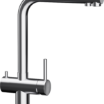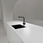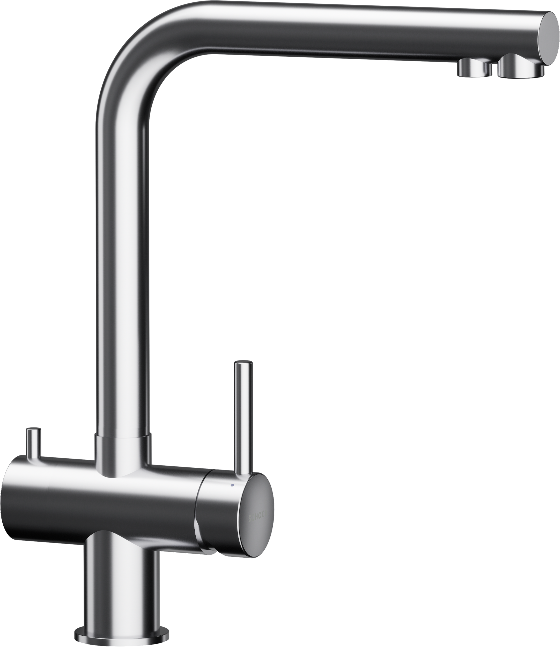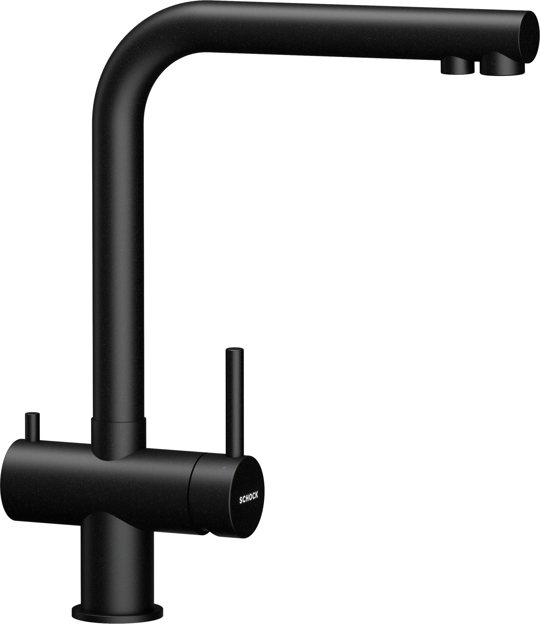Kuchynská batéria SCHOCK Vitus presvedčí moderným L-tvarom s vysokou polohou výtoku a samostatným výtokom na pitnú vodu.