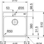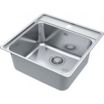 Nerezový drez Bell. Cena zahŕňa: Sitkový ventil 3 1/2“ s prepadom. Sifón pre úsporu miesta 6/4“ s odbočkou na umývačku riadu. Otvor pre batérii ∅ 35 mm. Fixačné príchytky Fast-Fix.