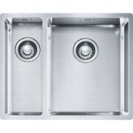 Nerezový drez Box. Cena zahŕňa: 2× Sitkový ventil 3 1/2“ s prepadom. Sifón pre úsporu miesta 6/4“ s odbočkou na umývačku riadu. Drez pre hornú montáž s plochým okrajom, do roviny a pre spodnú montáž. Fixačné príchytky Fast-Fix.