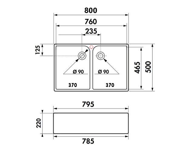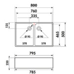 Keramický dvojdrez značky Chambord Farmhouse 800.2 – je dvojkomorové keramické umývadlo a drez v jednom. Dve rovnako veľké komory sú ideálne na prípravu jedál. Drez odporúčame do väčších kuchýň. Vanička drezu je dostatočne hlboká (cca 20 cm) na pohodlné umývanie riadu.