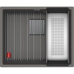 Fragranitový drez Kubus 2. Cena zahŕňa: Sitkový ventil 3 1/2“ s prepadom a nerezovou krytkou ventilu. Sifón pre úsporu miesta 6/4“ s odbočkou na umývačku riadu. Drez je možné kombinovať s batériou ACTIVE TWIST. A čím je toto spojenie jedinečné? Vďaka integrovanému ovládaniu na tele batérie, môžete ovládať otváranie a zatváranie výpuste drezu priamo z batérie. Ovládanie totiž nahrádza Easy Click gombík pri dreze.