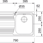Nerezový drez Logica. Cena zahŕňa: Sitkový ventil 3 1/2“ s prepadom. Sifón pre úsporu miesta 6/4“ s odbočkou na umývačku riadu. Otvor pre batériu ∅ 35 mm.