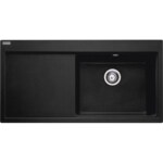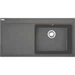 Fragranitový drez Mythos. Cena zahŕňa: Easy Click sitkový ventil 3 1/2“ s prepadom. Sifón pre úsporu miesta 6/4“ s odbočkou na umývačku riadu. 3 Miesta pre vyvŕtanie otvoru. Možnosť umiestniť dávkovač saponátu. Drez je možné kombinovať s batériou ACTIVE TWIST. Otočením ovládača na tele batérie ovládate otváranie a zatváranie výpustu drezu. Ovládanie na tele batérie nahrádza Easy Click tlačítko pri dreze.
