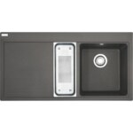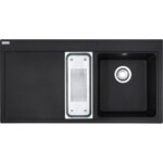 Fragranitový drez Mythos. Cena zahŕňa: Misku. Easy Click sitkový ventil 3 1/2″ s prepadom. Sifón pre úsporu miesta 6/4″ s odbočkou na umývačku riadu. 3 Miesta pre vyvŕtanie otvoru. Možnosť umiestniť dávkovač saponátu. Drez je možné kombinovať s batériou ACTIVE TWIST. Otočením ovládača na tele batérie ovládate otváranie a zatváranie výpustu drezu. Ovládanie na tele batérie nahrádza Easy Click tlačítko pri dreze.