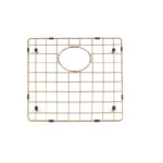 Mriežka do drezu Reginox Miami 50×40 Copper (R30677) . Mriežka chráni drez pred opotrebením. Pri používaní drezu nie je potrebné mriežku odstraňovať, voda krásne odteká do odpadu. Gumové nožičky a vonkajšie ohraničenie mriežky zaisťuje pevné uchytenie na dne drezu a drez chráni.