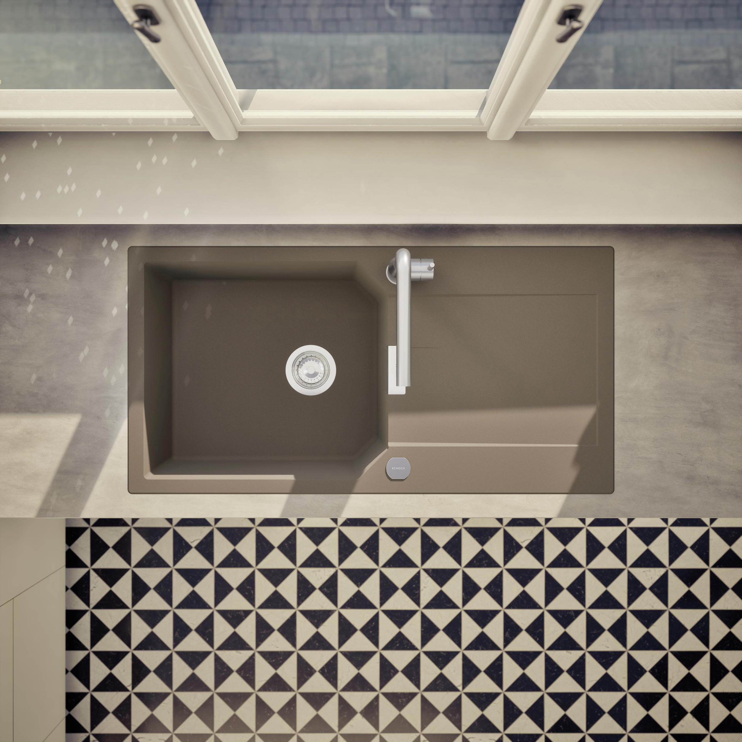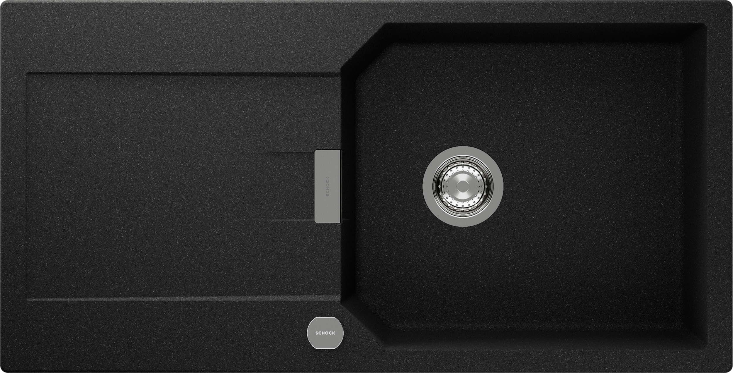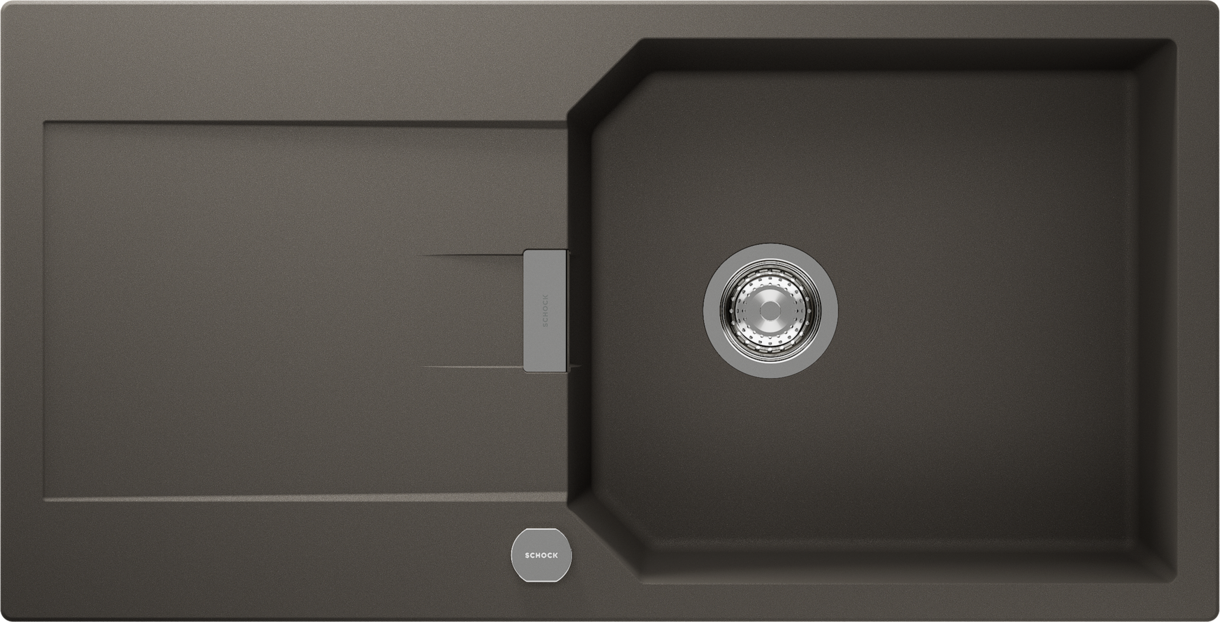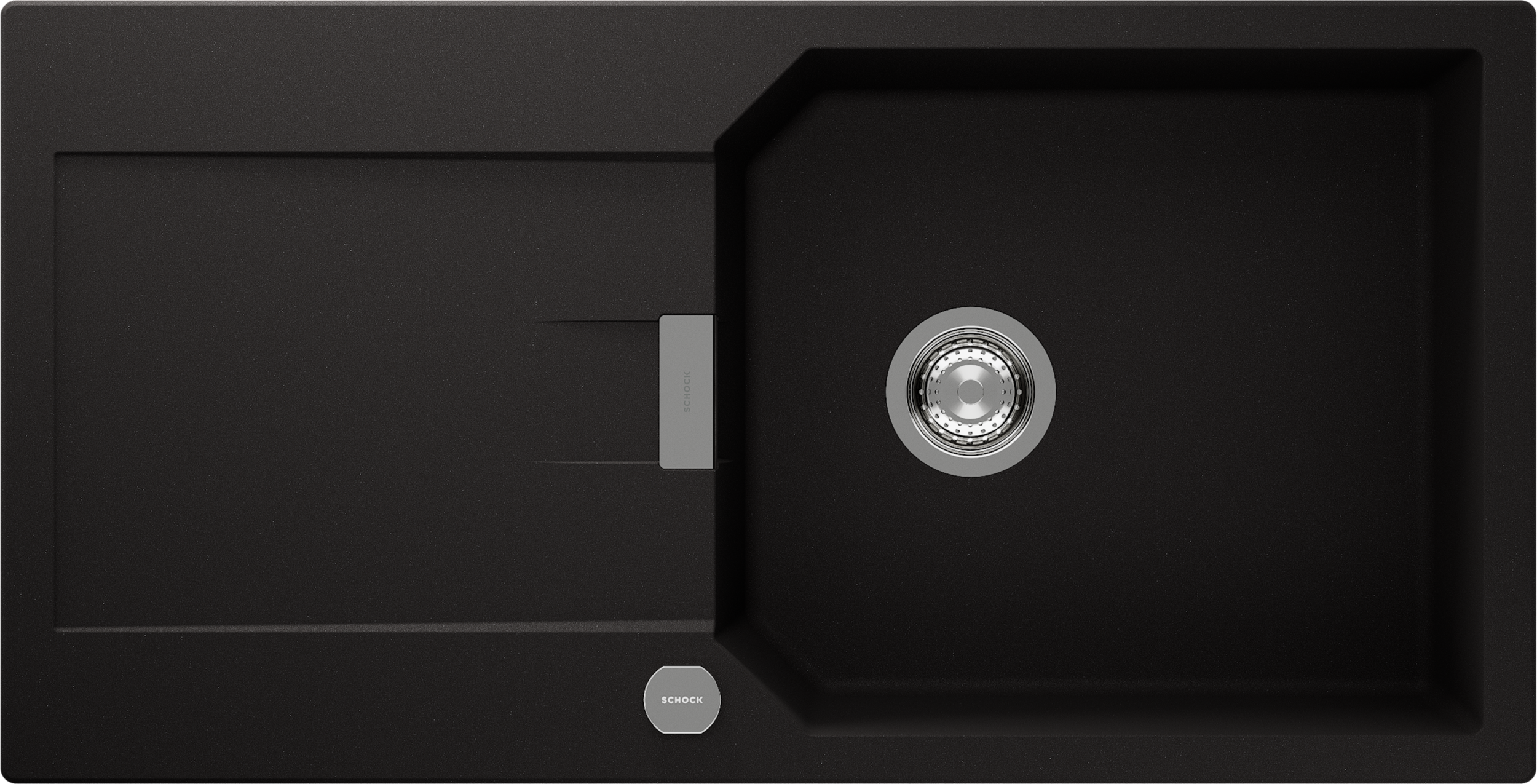 Priestranný kuchynský drez SCHOCK Manhattan D-100L z materiálu CRISTALITE® poskytuje extra objem vaničky pre veľké hrnce v umývacom priestore.