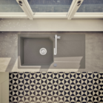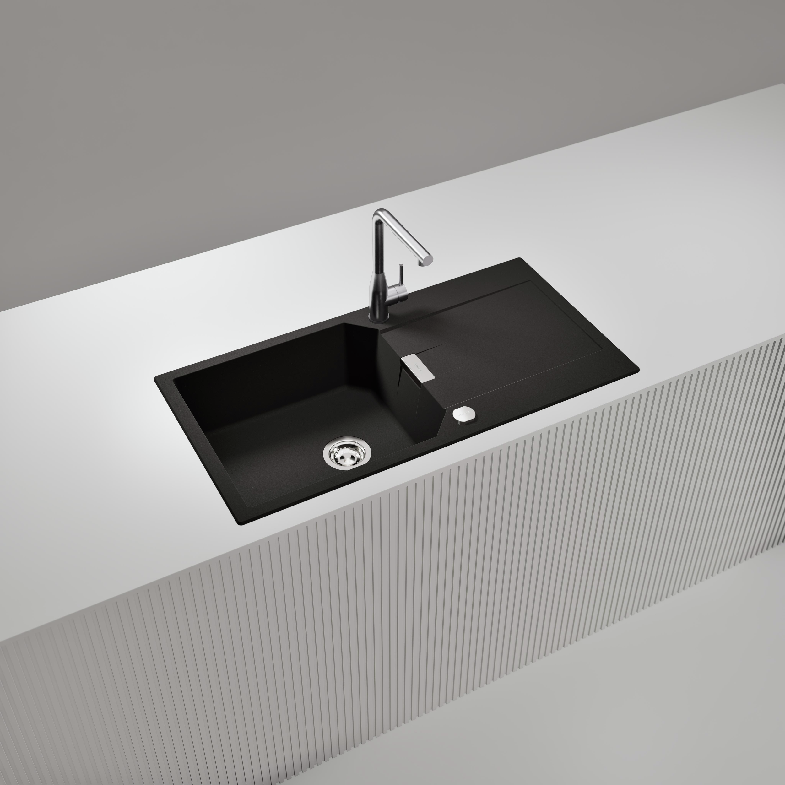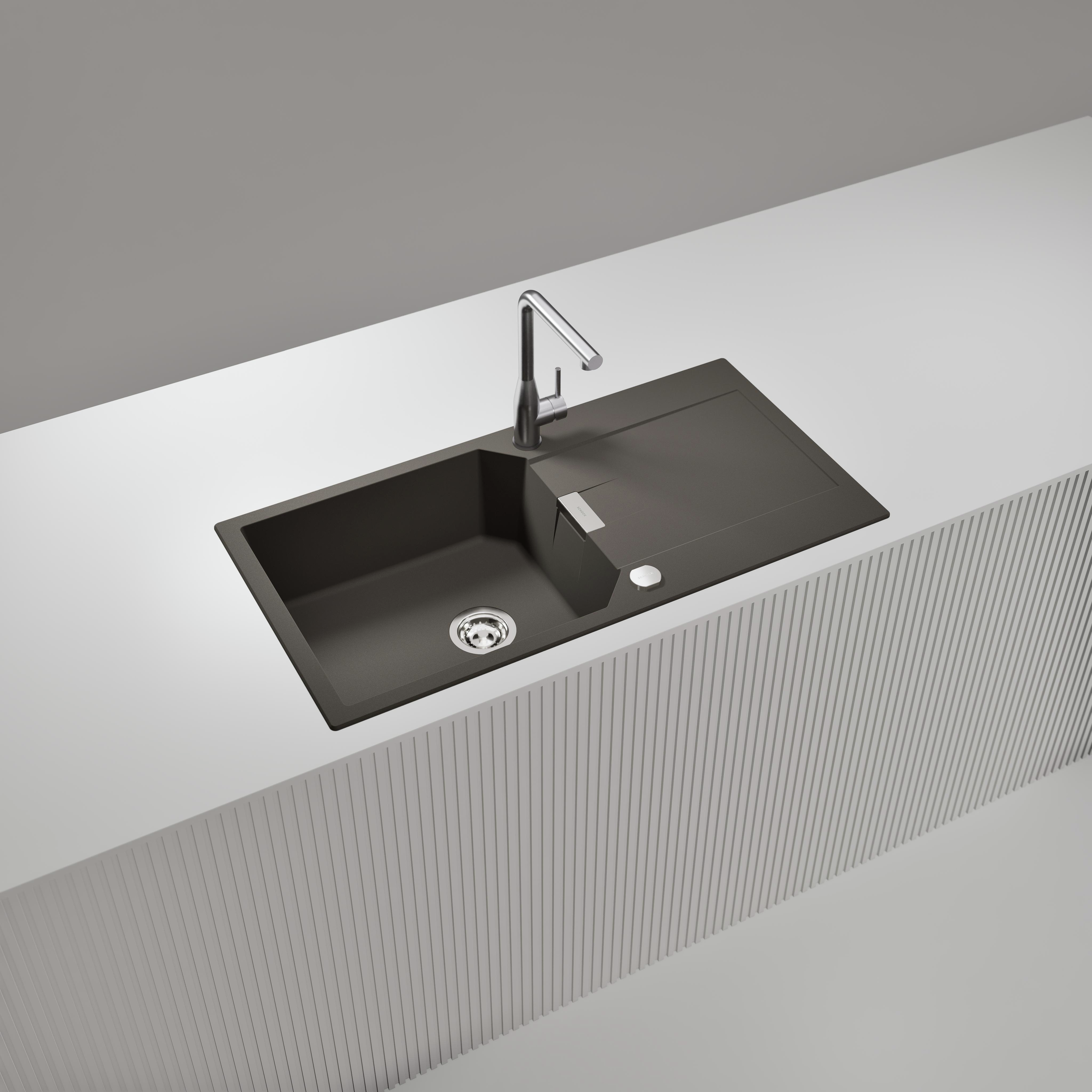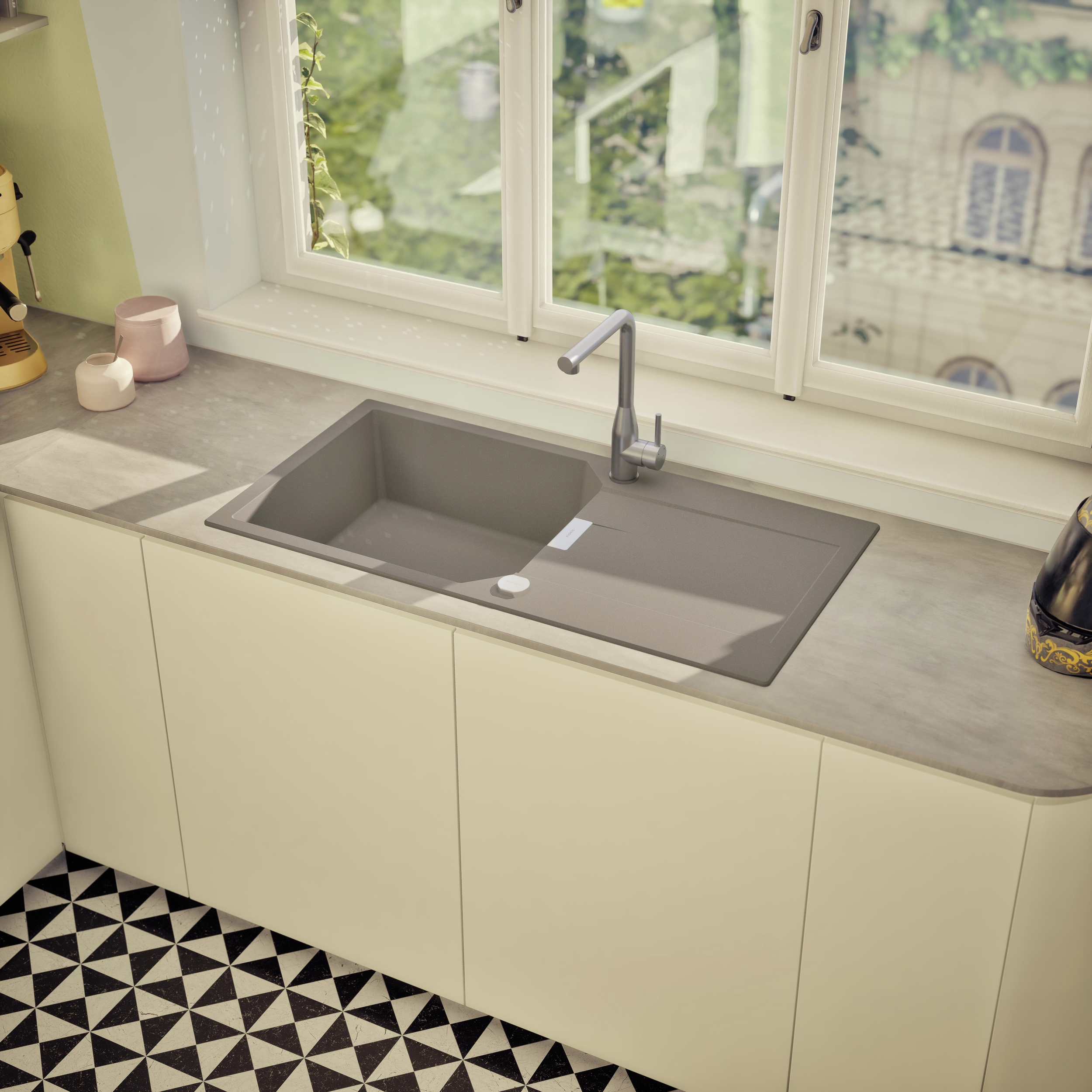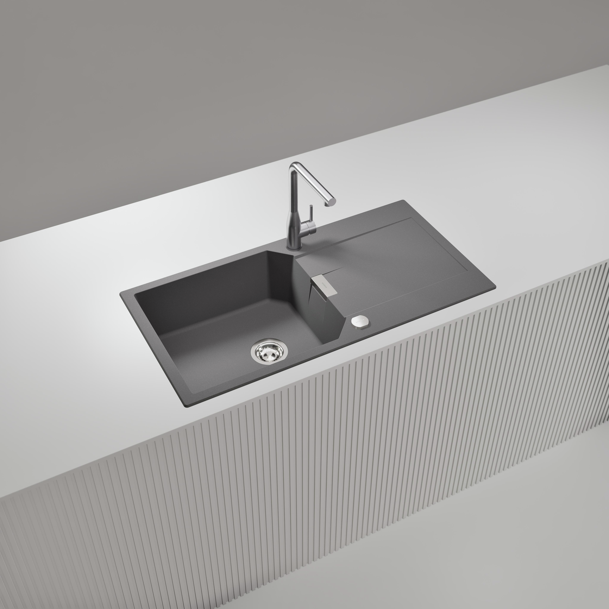 Priestranný kuchynský drez SCHOCK Manhattan D-100L z materiálu CRISTALITE® poskytuje extra objem vaničky pre veľké hrnce v umývacom priestore.