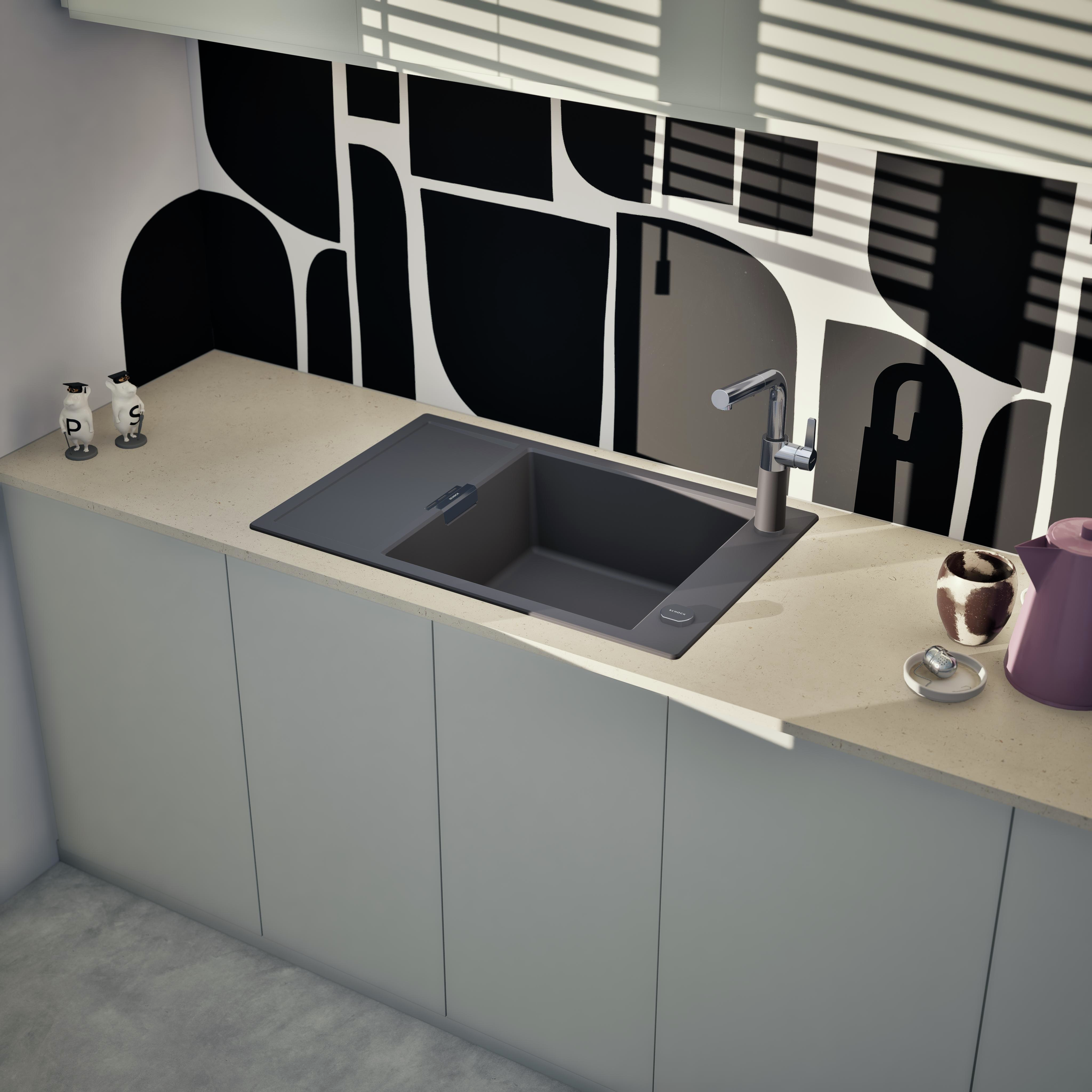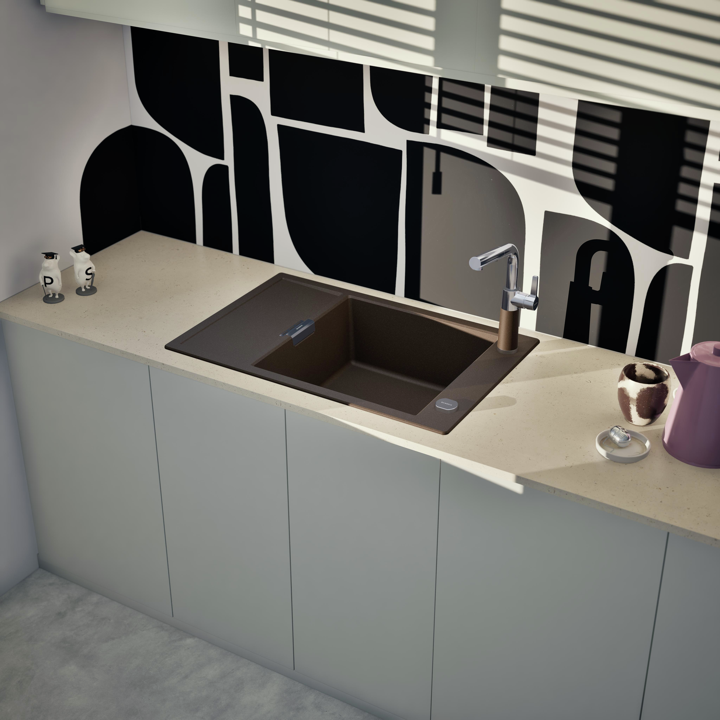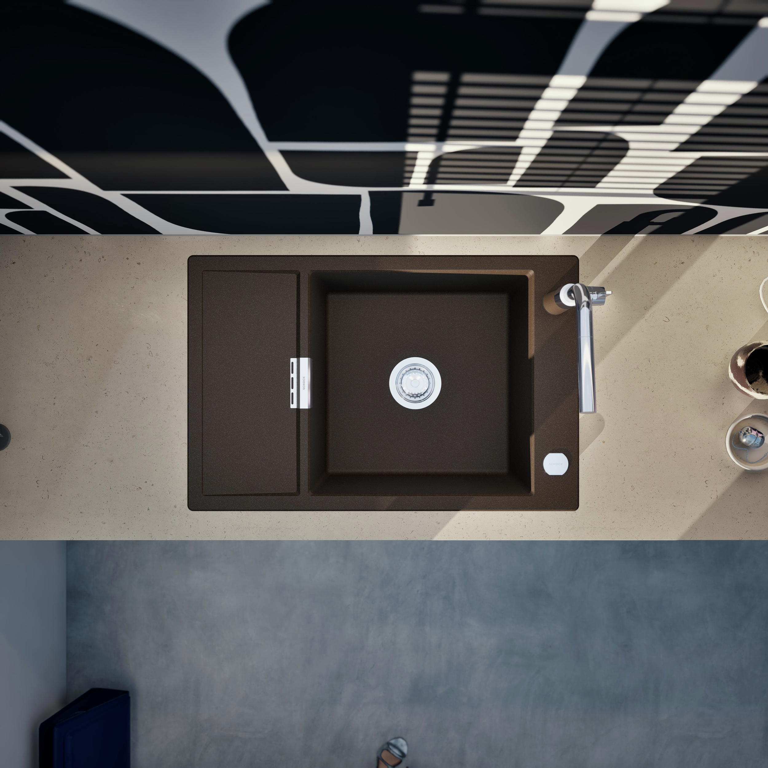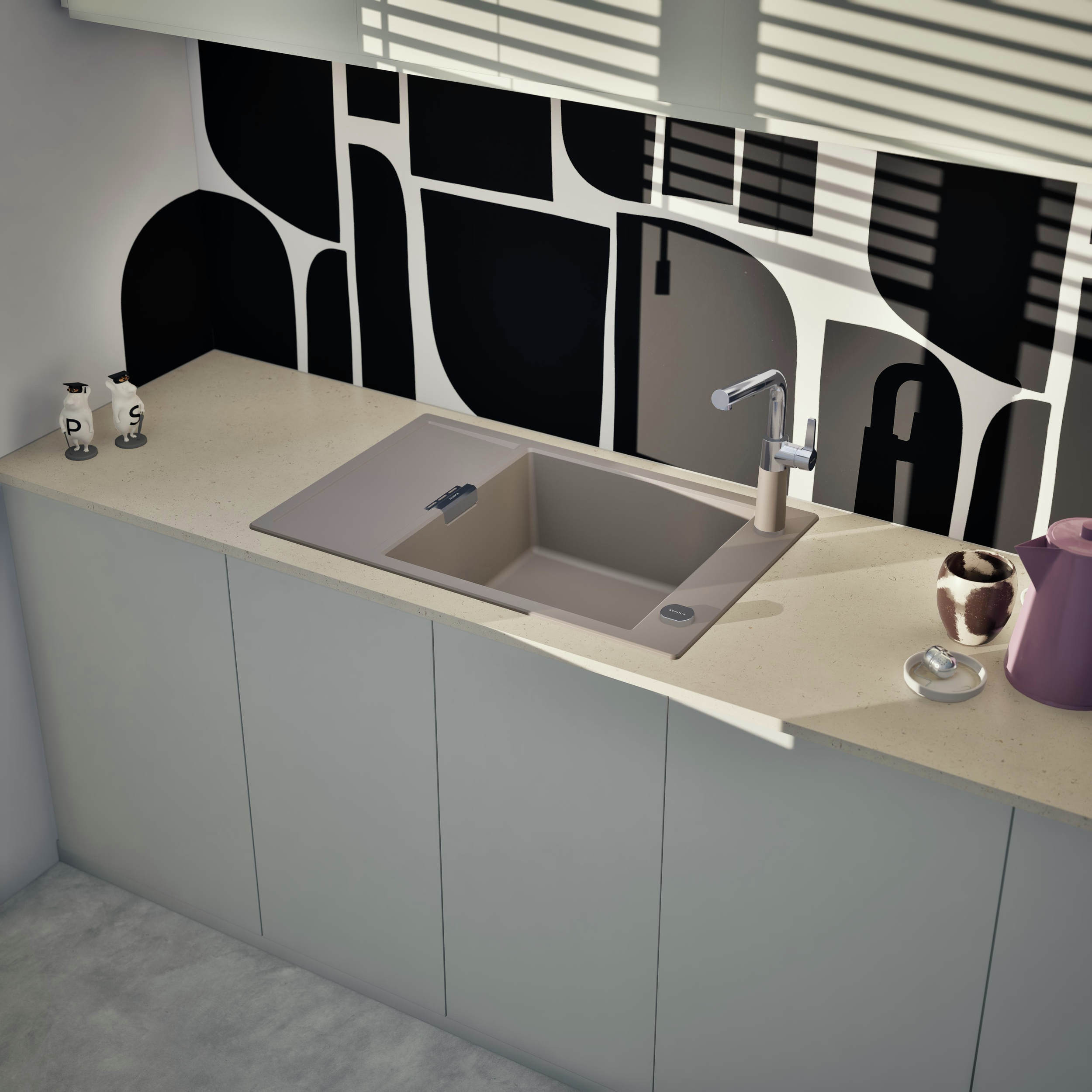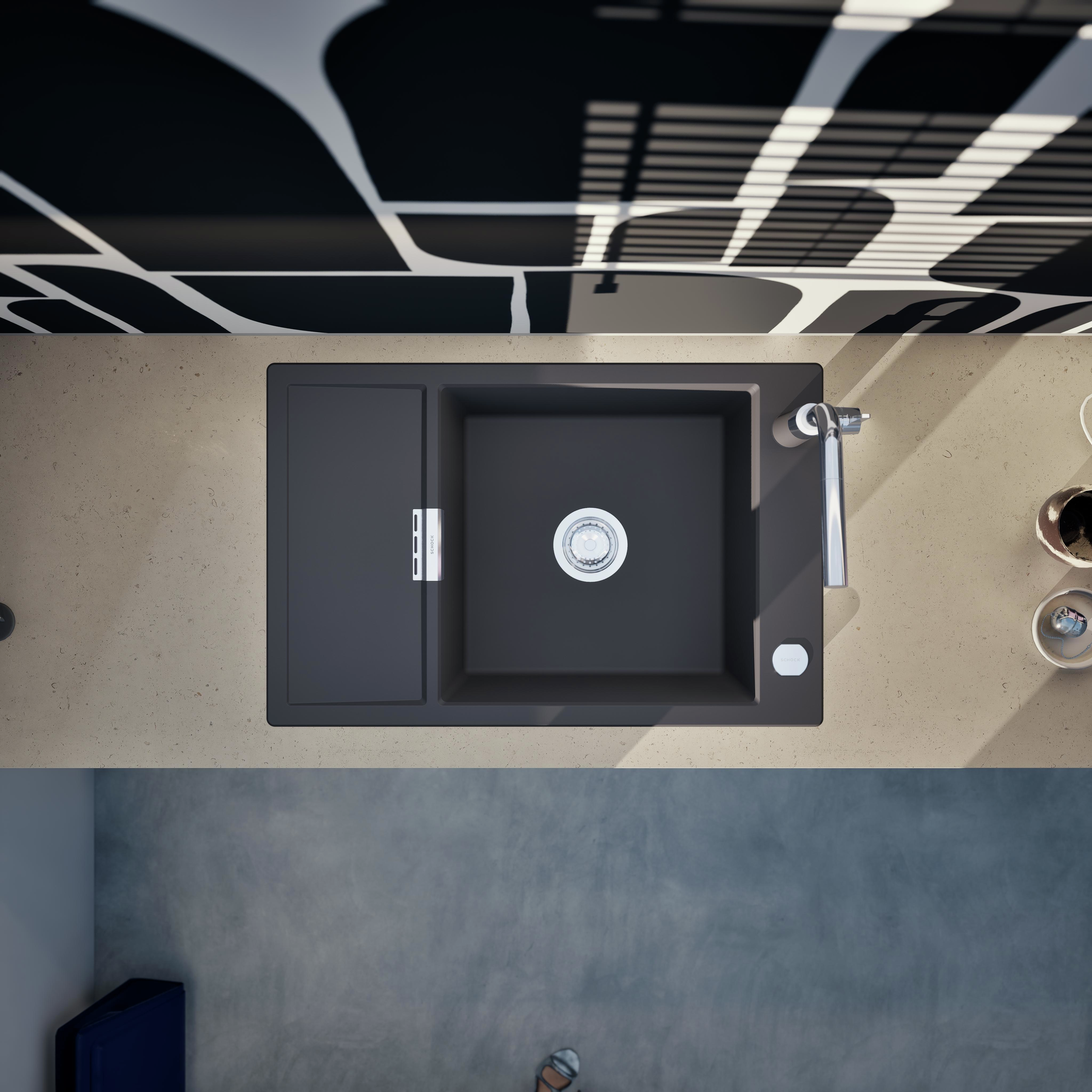 Vďaka dodatočnému, zníženému odtoku, skrátenej odkvapkávacej ploche a možnosti funkčného príslušenstva je kuchynský drez SCHOCK Mono D-100XS ideálny do menších kuchýň.