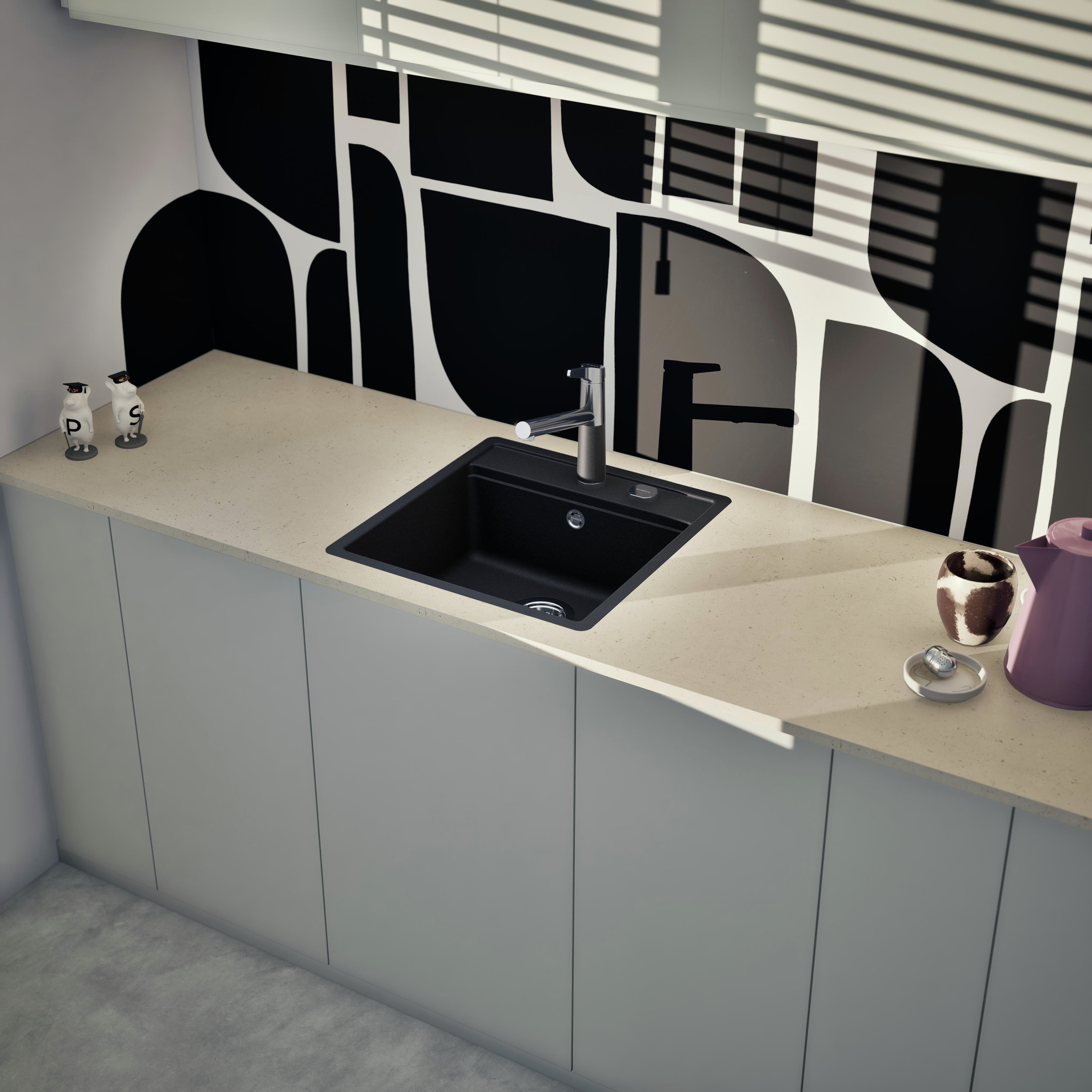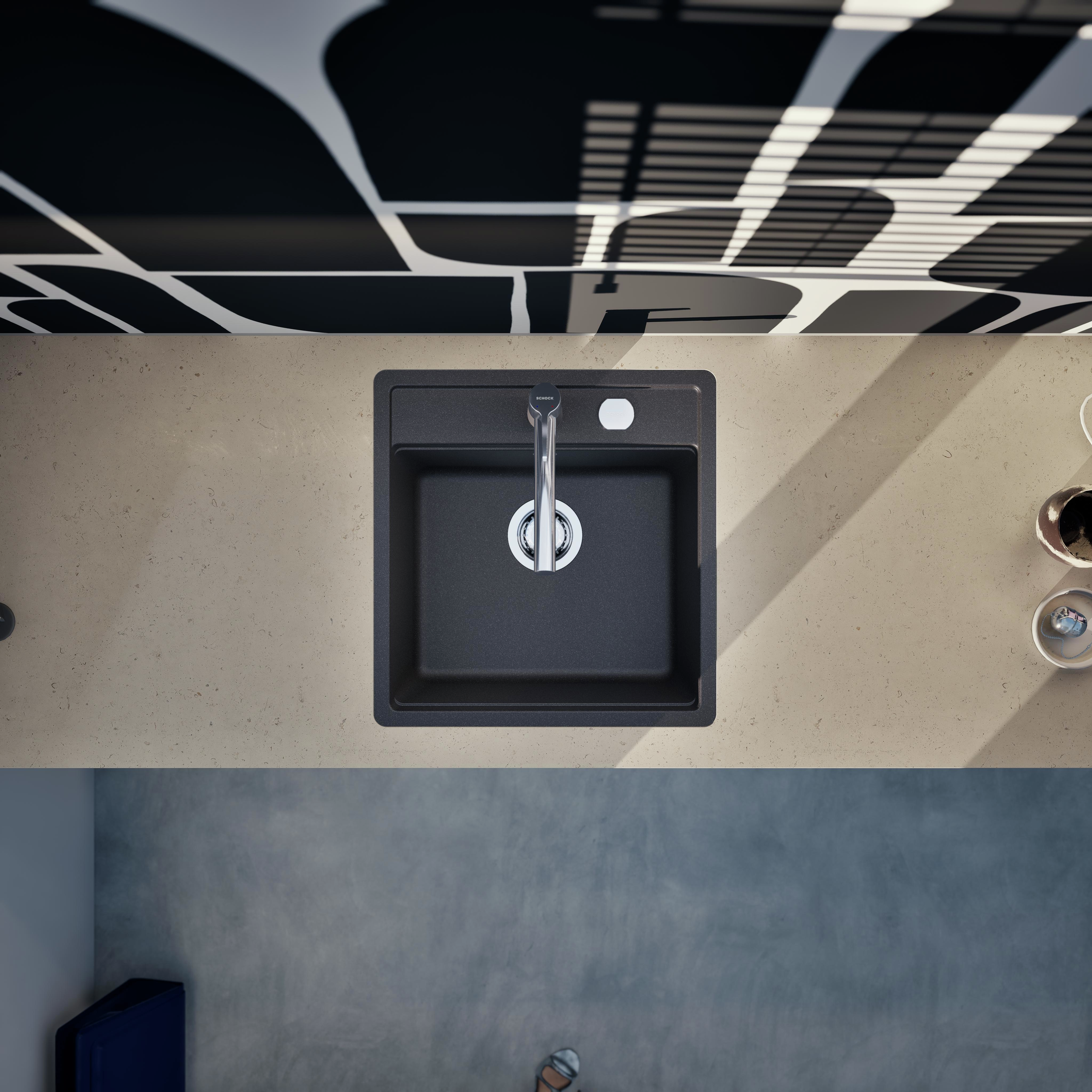 Vďaka inteligentnému stupňovitému usporiadaniu kompaktnej kuchynskej drezu SCHOCK Mono N-100S je možné prakticky uložiť príslušenstvo na varenie v pare a ďalšie kuchynské pomôcky priamo nad vaničkou