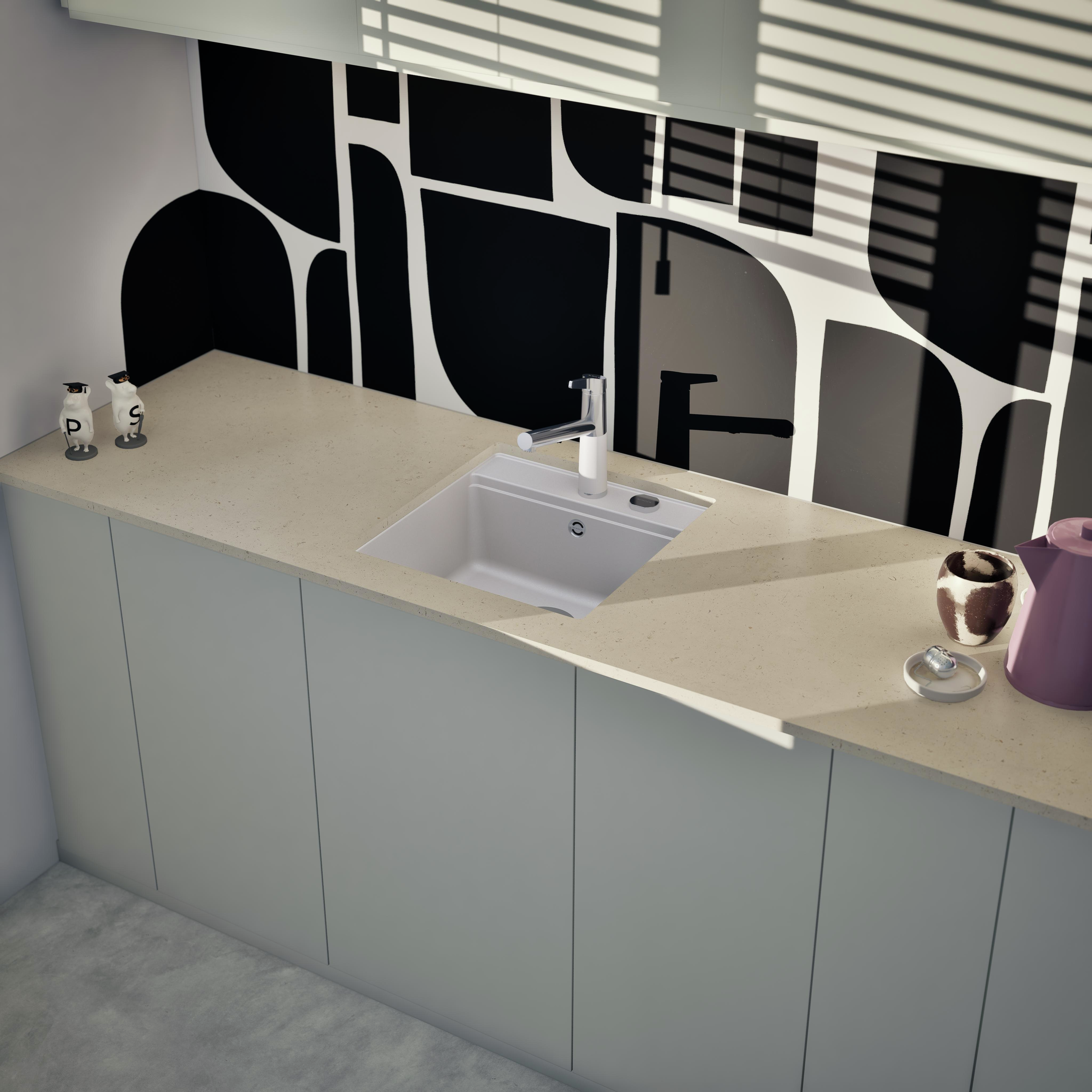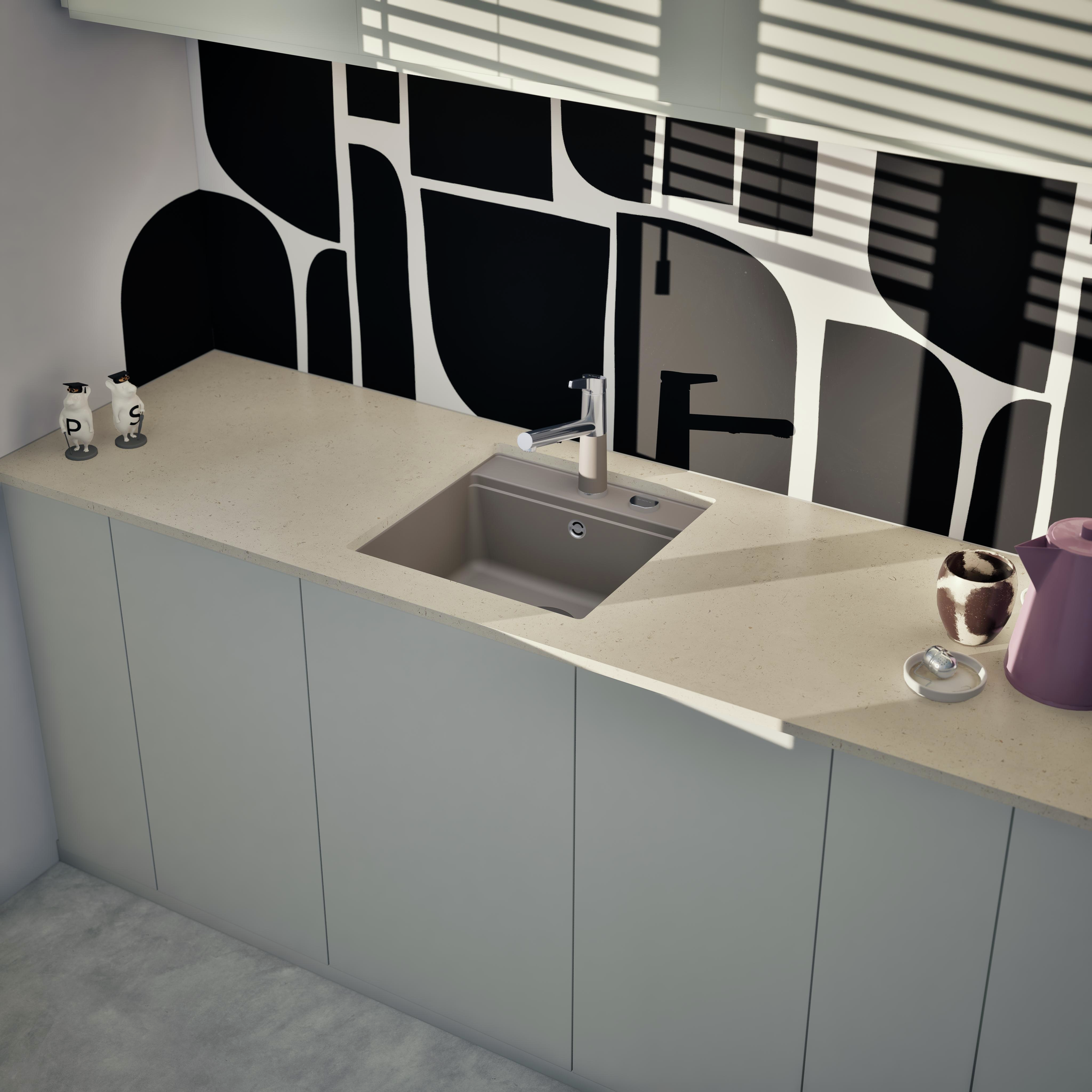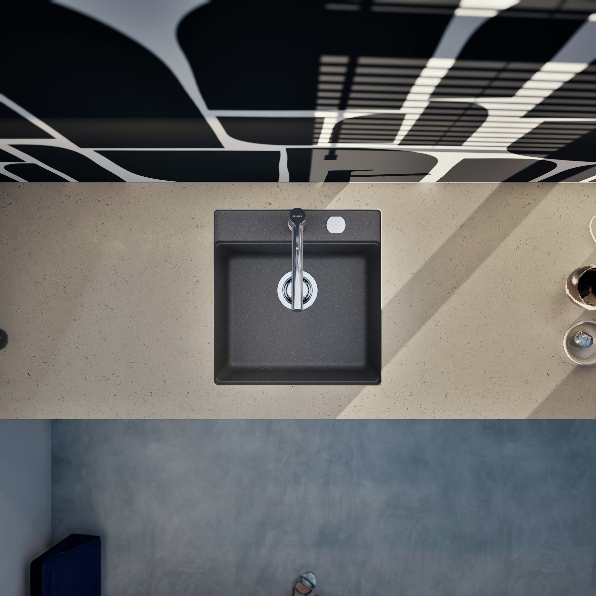 Vďaka inteligentnému stupňovitému usporiadaniu kompaktnej kuchynskej drezu SCHOCK Mono N-100S je možné prakticky uložiť príslušenstvo na varenie v pare a ďalšie kuchynské pomôcky priamo nad vaničkou