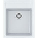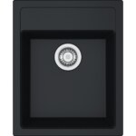 Tectonitový drez Sirius. Cena zahŕňa: Sitkový ventil 3 1/2“ s prepadom. Sifón pre úsporu miesta 6/4“ s odbočkou na umývačku riadu. Otvor pre batériu ∅ 35 mm. Možnosť vyvŕtať ďalší otvor pre dávkovač saponátu. (Otvor možno vyvŕtať vykružovacím vrtákom priamo pri montáži).