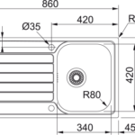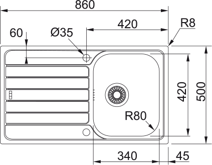 Nerezový drez Spark. Cena zahŕňa: Sitkový ventil 3 1/2“ s prepadom. Sifón pre úsporu miesta 6/4“ s odbočkou na umývačku riadu.