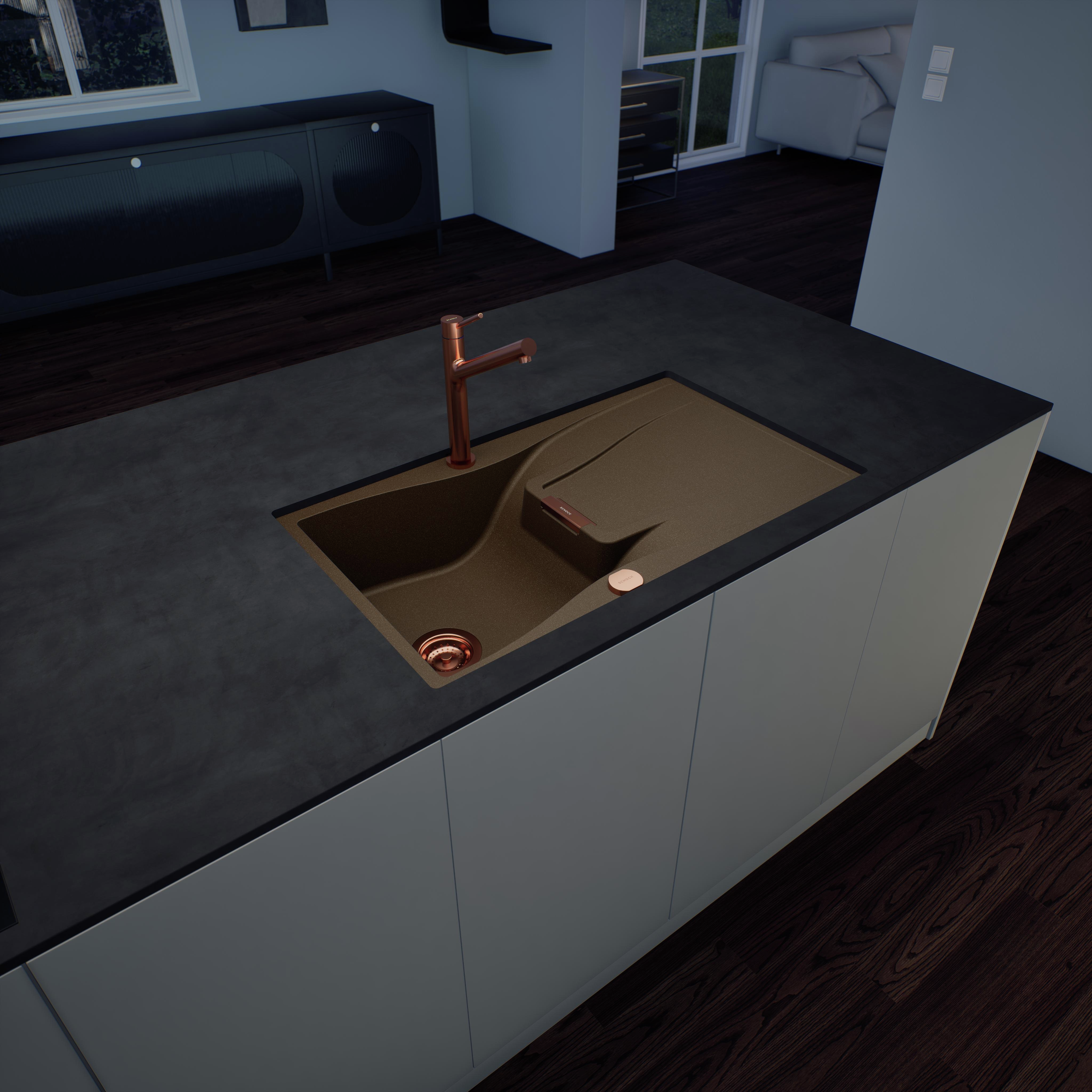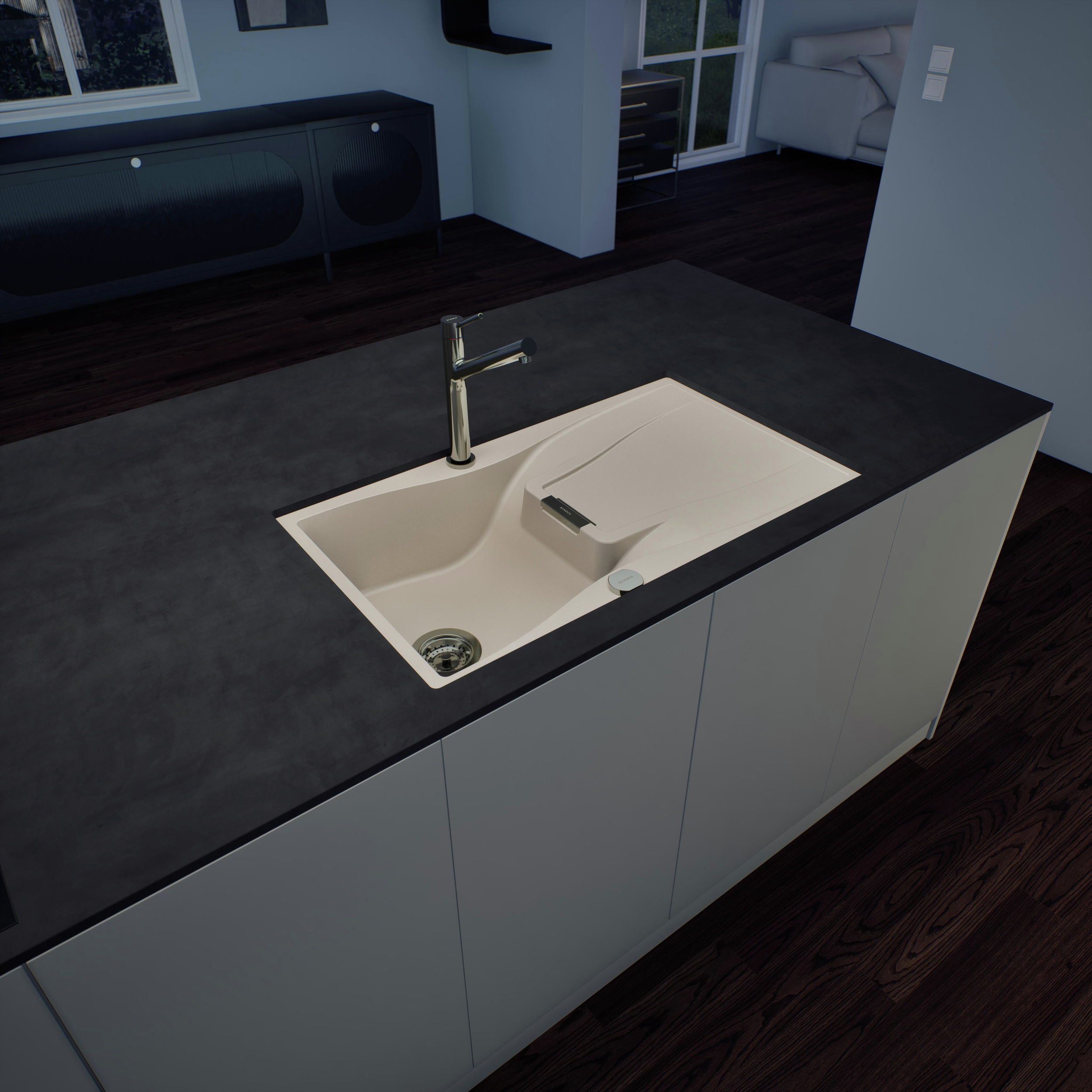 Drez SCHOCK Waterfall D-100 je moderný drez z materiálu CRISTADUR® s dodatočným, zníženým odtokom, ktorý sa šetrne inštaluje do spodnej skrinky.