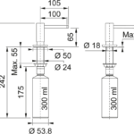 Objem 300 ml. Vrchné plnenie. Pre otvor ∅ 24 – 35 mm. Kulatá základňa ∅ 5 cm.