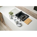 Tento set obsahuje: Teleskopický držiak, prípravnú dosku, veľkú odkvapkávaciu misku a rolovaciu silikónovú podložku. All- In premení váš drez na štýlový a hravý pracovný priestor. Flexibilný systém doplnkov na prípravu jedla navrhnutý tak, aby do vašej kuchyne a života priniesol viac harmónie. Tento dobre vybavený a intuitívny modulárny systém má všetko, čo potrebujete na jednoduchú prípravu jedál, a to vďaka tomu, že potrebné príslušenstvo máte na dosah. Doplnky s nekonečným použitím, ktoré sa prispôsobia akémukoľvek drezu*. Až sedem samostatných príslušenstiev s viacerými možnosťami použitia. *S rozmerom vane drezu do 540 mm.