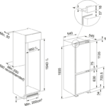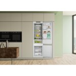 Vstavaná kombinovaná chladnička s mrazničkou 194 cm. Prevedenie biela. Metalický zadný panel vo vnútri chladničky. Total No Frost systém. Funkcia Fast Freeze. Energetická trieda D. Klimatická trieda SN/T. 4 Nastaviteľné police z bezpečnostného skla. Zásuvka na zeleninu. 0°C zóna. Zásobník na vajcia. Forma na ľad. Chrómový držiak na fľaše. LED osvetlenie. Alarm otvorených dverí. Ročná spotreba energie 177 kWh/rok. Hlučnosť 34 dB(A). Chladnička Netto objem 212 l. Mraznička Netto objem 68 l.
