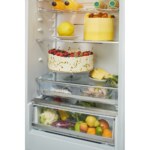 Vstavaná kombinovaná chladnička s mrazničkou 194 cm. Šírka skrínky 75 cm. Prevedenie biela. Total No Frost systém. Funkcie Fast Freeze. Energetická trieda E. Klimatická trieda SN/T. 3 (2 Nastaviteľné) police z bezpečnostného skla. Zásuvka na zeleninu s reguláciou vlhkosti. 0°C zóna. Zásobník na vajcia. Forma na ľad. Chromový držiak na flaše. LED osvetlenie. Alarm otvorených dverí. Ročná spotreba energie 253 kWh/rok. Hlučnosť 34 dB(A). Chladnička Netto objem 288 l. Mraznička Netto objem 96 l.