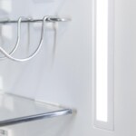Chladiaca časť: Čistý objem chladničky: 170,1 l; Side LED osvetlenie; Automatické odmrazovanie; 3 nastaviteľné + 1 pevná polica z bezpečnostného skla; Zásuvka na ovocie a zeleninu; Priehradka na fľaše vo dverách; 3 závesné priehradky vo dverách; Zásobník na vajíčka; Nerezový držiak fliaš