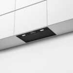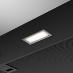 Vstavaný odsávač pár Box Flush Basic. Prevedenie Matná čierna (NCS S 9000-N). Energetická trieda B. Tlačidlové ovládanie. 3 Stupne výkonu. Intenzívny stupeň.