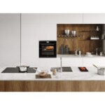 - Moderný dizajn: kombinácia čierneho skla a nerezu