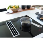 Odsávač pár v indukčnej varnej doske Maris 2Gether Steel. Prevedenie čierne sklo. Energetická trieda A+. Odsávač pár: Montáž do pracovnej dosky. Šírka 83 cm. Ovládanie: Senzorové. Digitálny červený displej + Dotykový ovládač typu Slide. 9 Stupňov výkonu, 1× Intenzívny stupeň. Automatická aktivácia s varnou doskou. Vodeodolný motor. Nerezová mriežka. Max. výkon 630 m3/h (Norma EN 61591). Súčasťou odsávača pár je vyberateľný kolektor na tekutinu (V prípade náhodného vyliatia tekutiny do odsávača pár). Indukčná varná doska: 4 Varné zóny. 2× Flexi zóna. Ovládanie: 4 Dotykové ovládače typu Slide. 9 Úrovni ohrevu. Vlastnosti: Rozpúšťanie. Booster. Stop&Go. Detský zámok. Časovač 4×. Odsávač pár aj indukcia sú perfektne integrované. Odsávanie je aktivované automaticky, akonáhle je varná doska v prevádzke. MODEL LEN PRE VONKAJŠÍ ODŤAH.