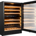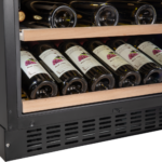 Dvojzónová servírovacia vinotéka značky Avintage s možnosťou inštalácie ako voľne stojaca alebo vstavaná pod pracovnú dosku; Celková kapacita 46 fliaš s objemom 75 cl, horná zóna 24 fliaš, spodná zóna 22 fliaš; Rozsah nastavenia teplôt: 5-12 °C pre hornú zónu a 12-20 °C pre spodnú zónu; Čierny rám dverí s horizontálnym madlom v hornej časti dverí; 3 vrstvy tvrdeného šedo tónovaného skla s nízkou emisivitou as UV filtrom; Možnosť zmeny smeru otvárania dverí; Čierne telo vinotéky; Možnosť demontáže spodnej ventilačnej mriežky a jej nahradenia (perforovaným) nábytkovým soklom; Sokel s výrezom 2 cm a odnímateľná vetracia mriežka, celkom 7,5 cm; Výklenok v zadnej časti, Biele podsvietený displej; LED osvetlenie s vypínačom as možnosťou nastavenia farby a intenzity osvetlenia podľa potreby aby zodpovedalo atmosfére vašej kuchyne; Vyberte si z 3 farieb: studená biela, teplá biela, jantárová a 4 stupňov intenzity: 25%, 50%, 75%, 100%; 5 ks výsuvných drevených políc; 1 ks pevná prezentačná drevená polica; Police na teleskopických výsuvoch;Elektronická regulácia teploty; Automatické odmrazovanie; Prirodzená regulácia vlhkosti; Systém aktívnej ventilácie v oboch zónach; Antivibračný systém; Vizuálne a zvukové alarmy na zvýšenie teploty a otvorené dvere; Filter s aktívnym uhlím;Alarm opotrebenia filtra s aktívnym uhlím; Klimatická trieda ST (16°C – 38°C); 4 výškovo nastaviteľné nôžky až 9,5 cm; Dĺžka napájacieho kábla 180 cm; Energetická trieda F; Ročná spotreba energie 102 kWh; Hlučnosť 37 dB; Hmotnosť 56 kg; Rozmery (VxŠxH): 88 x 59,5 x 57,5 cm