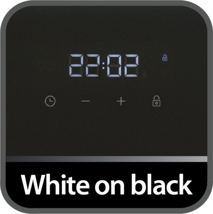 Přehledný a kontrastní LCD displej s dotykovými tlačítky a otočnými voliči pro snadnou a rychlou obsluhu (bílá čísla a symboly na černém pozadí).